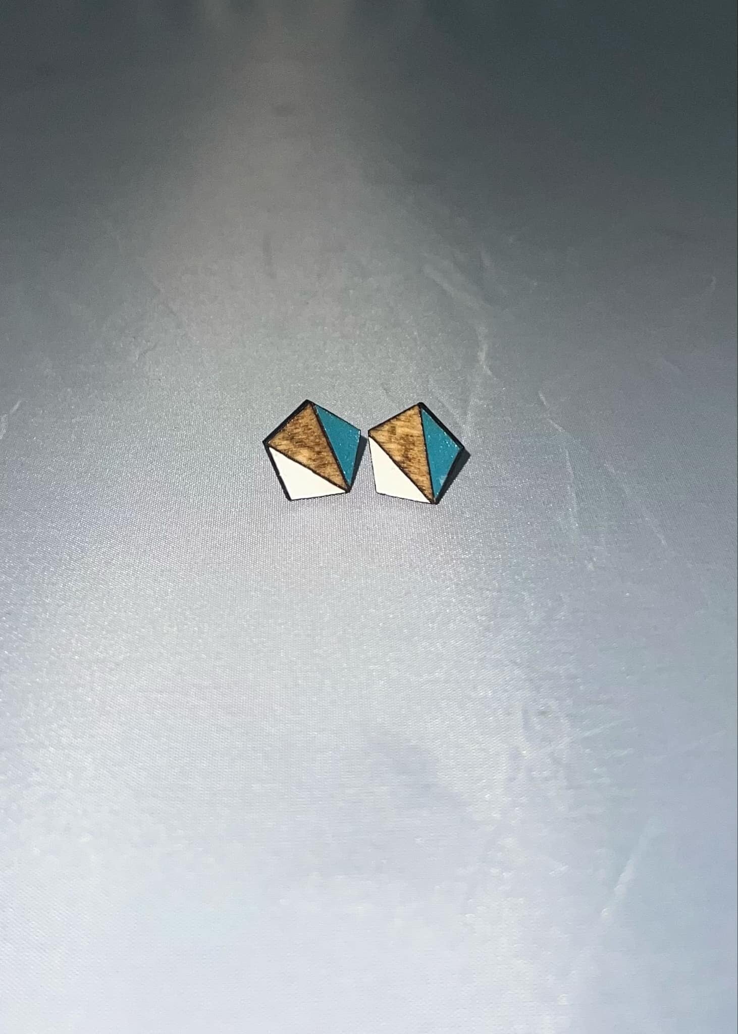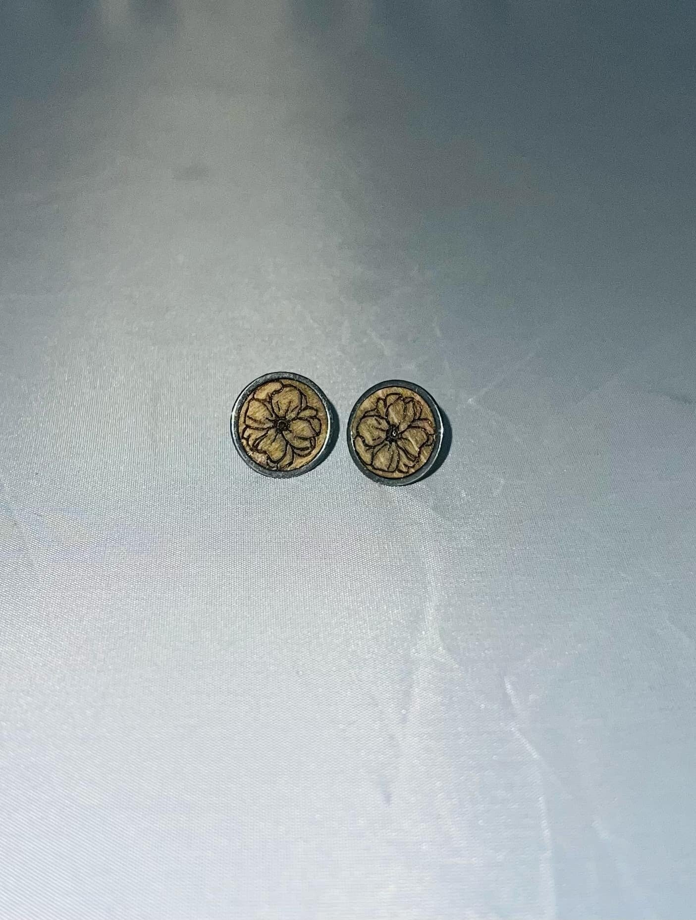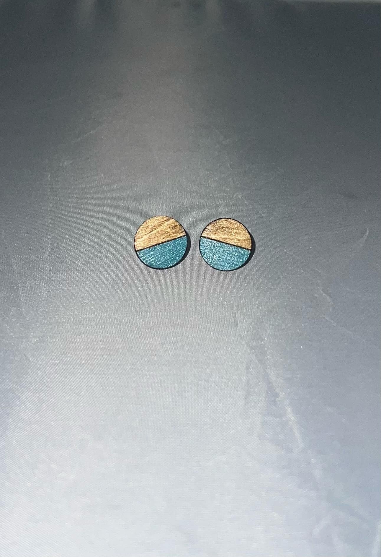 Laser engraved and cut hand painted and finished stud earrings.